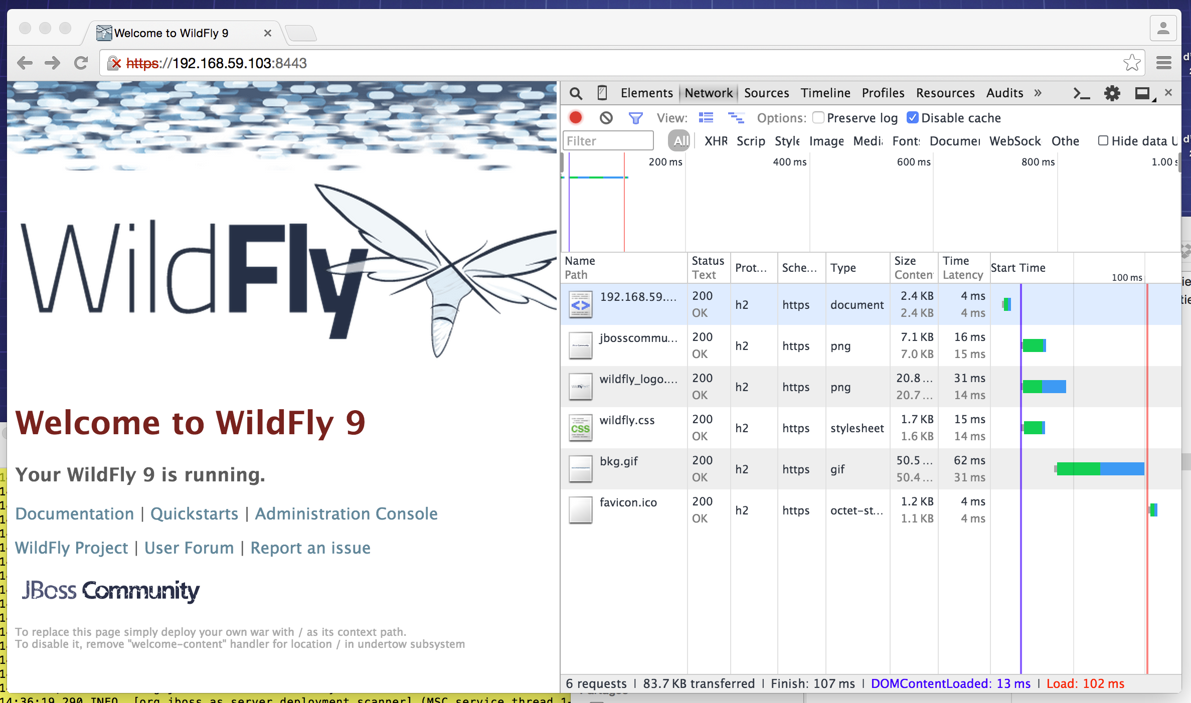 docker run -it -p 9990:9990 -p 8080:8080 -p 8443:8443 wildfly-http2